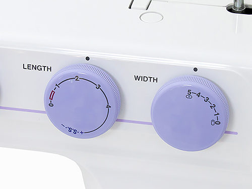 В этой модели вы сможете настроить не только длину стежка до 4 мм, но и установить желаемую ширину строчки до 5 мм. Регулируйте эти параметры в зависимости от используемой ткани и ниток.